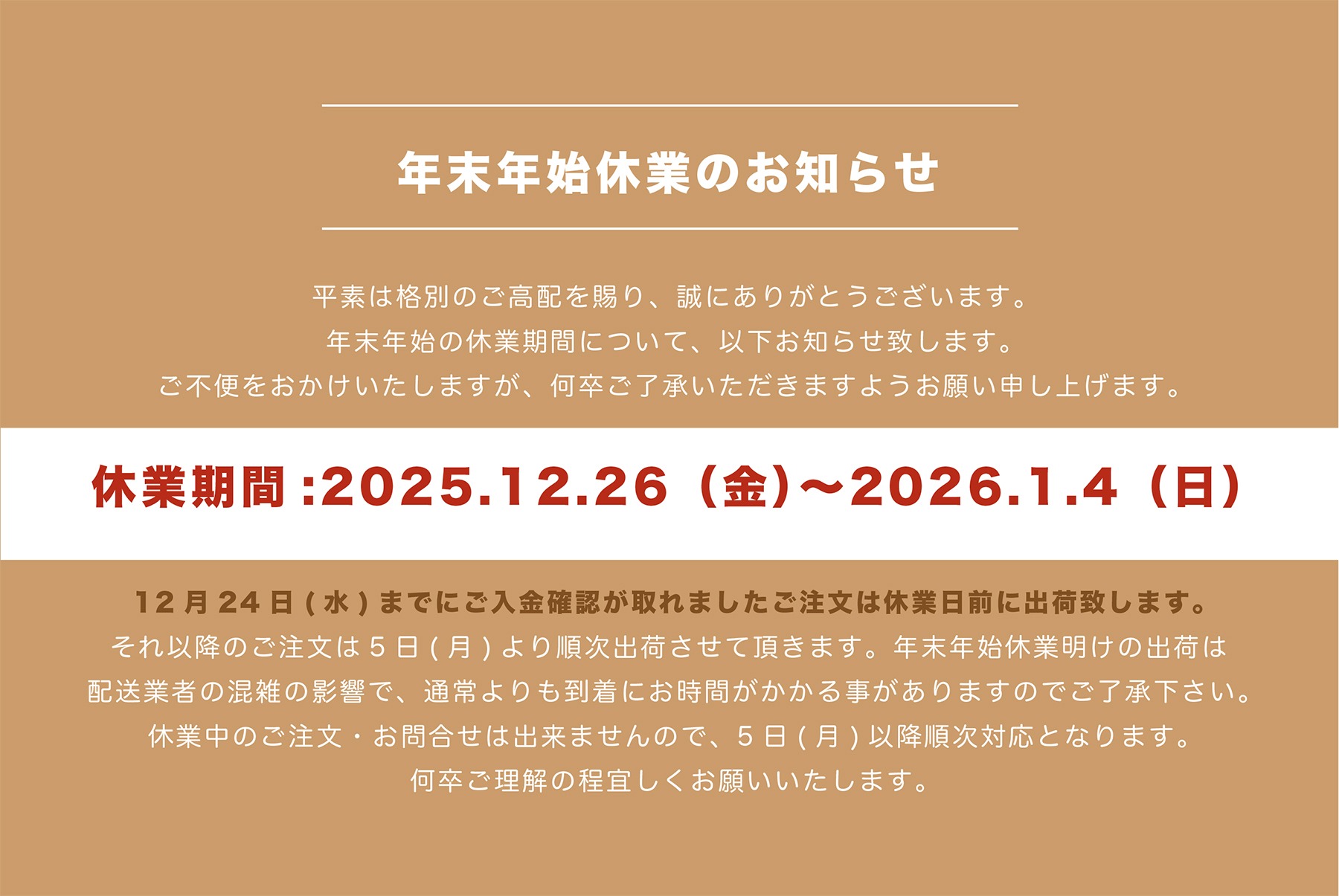 - Aご注文確定後、3営業日以内に発送いたしております。