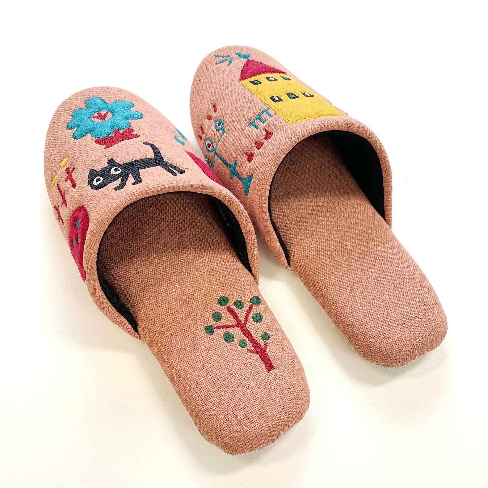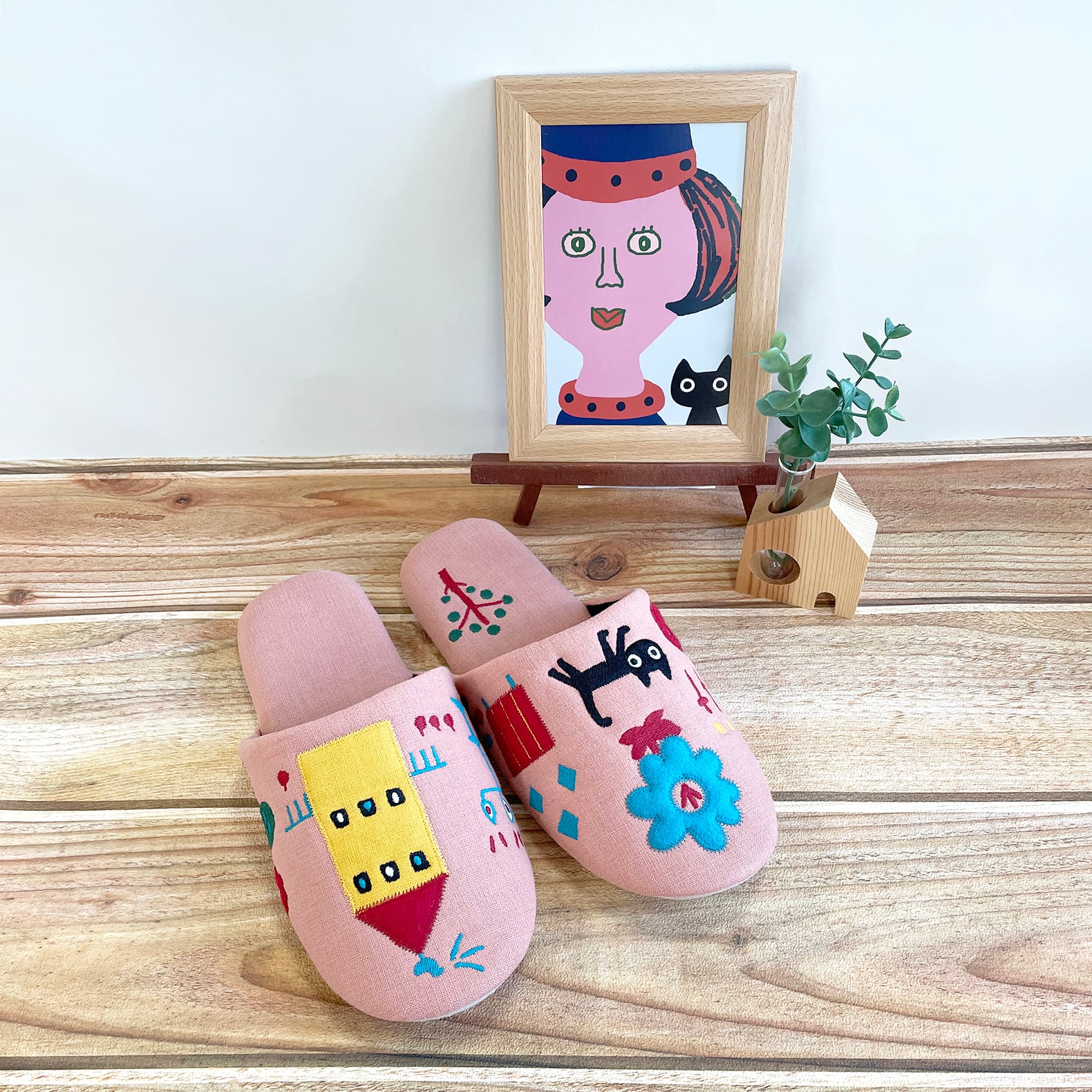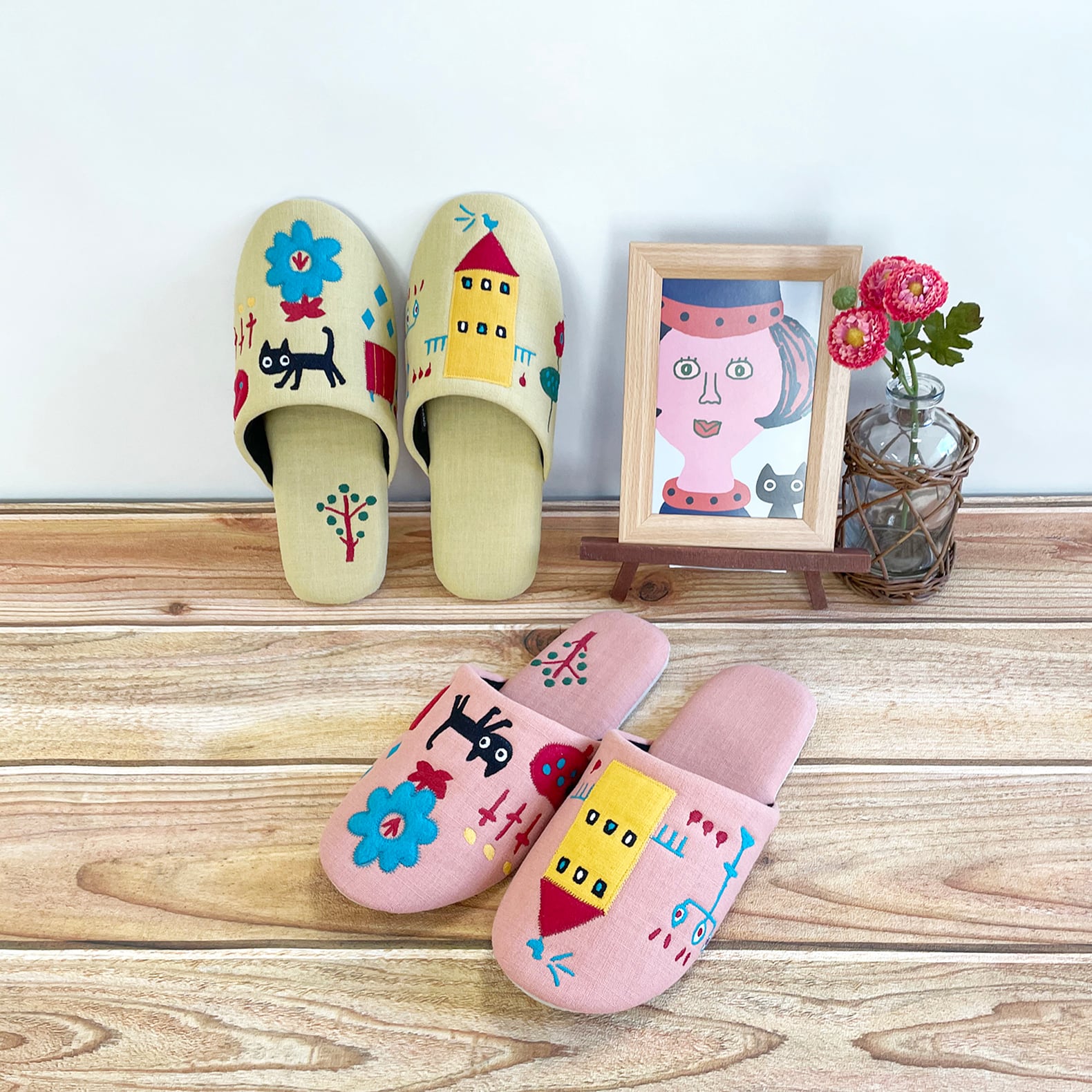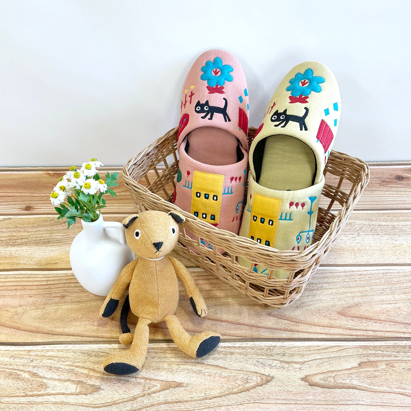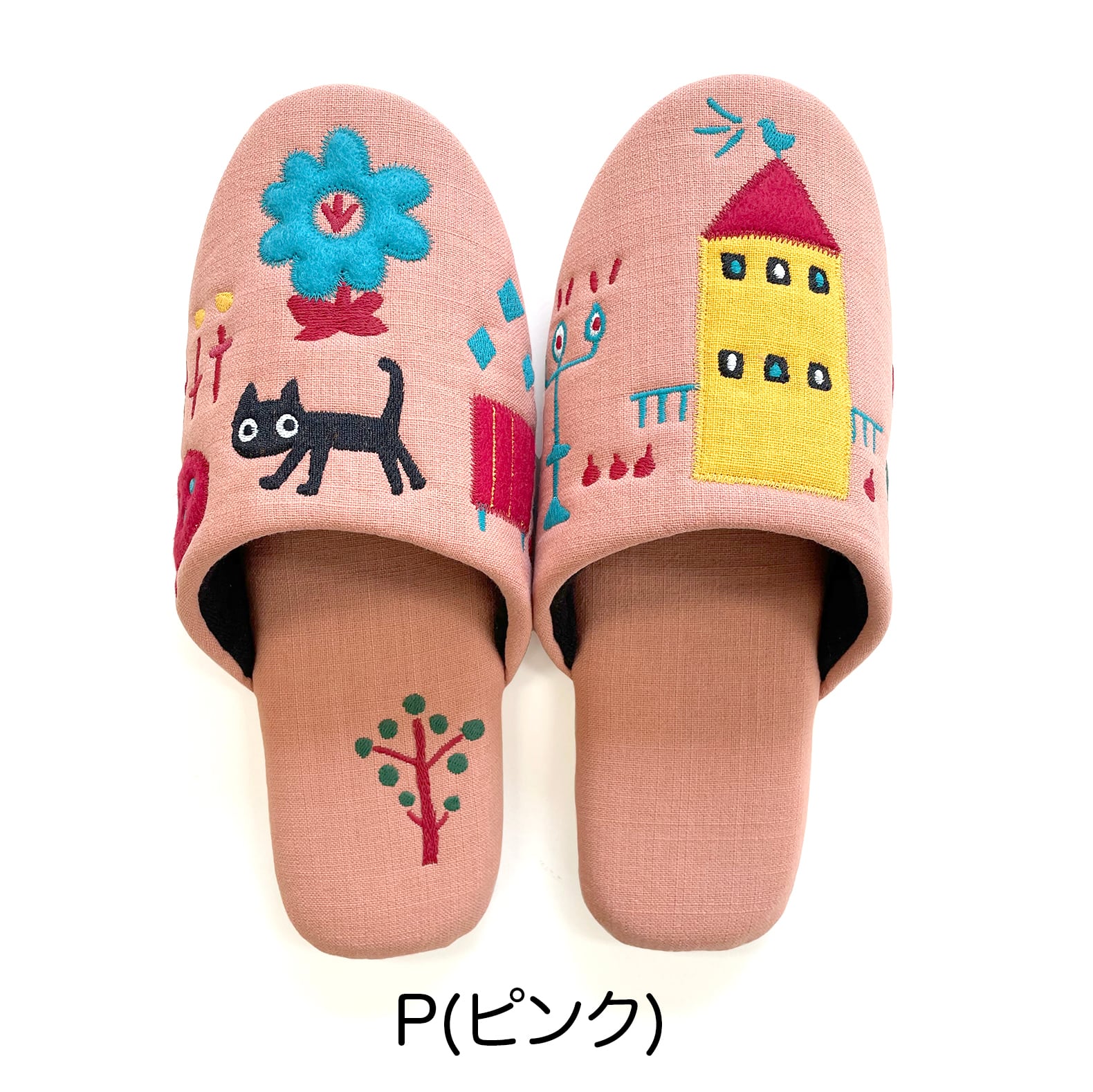 可愛らしい街並みのアップリケ刺繍がポイント!