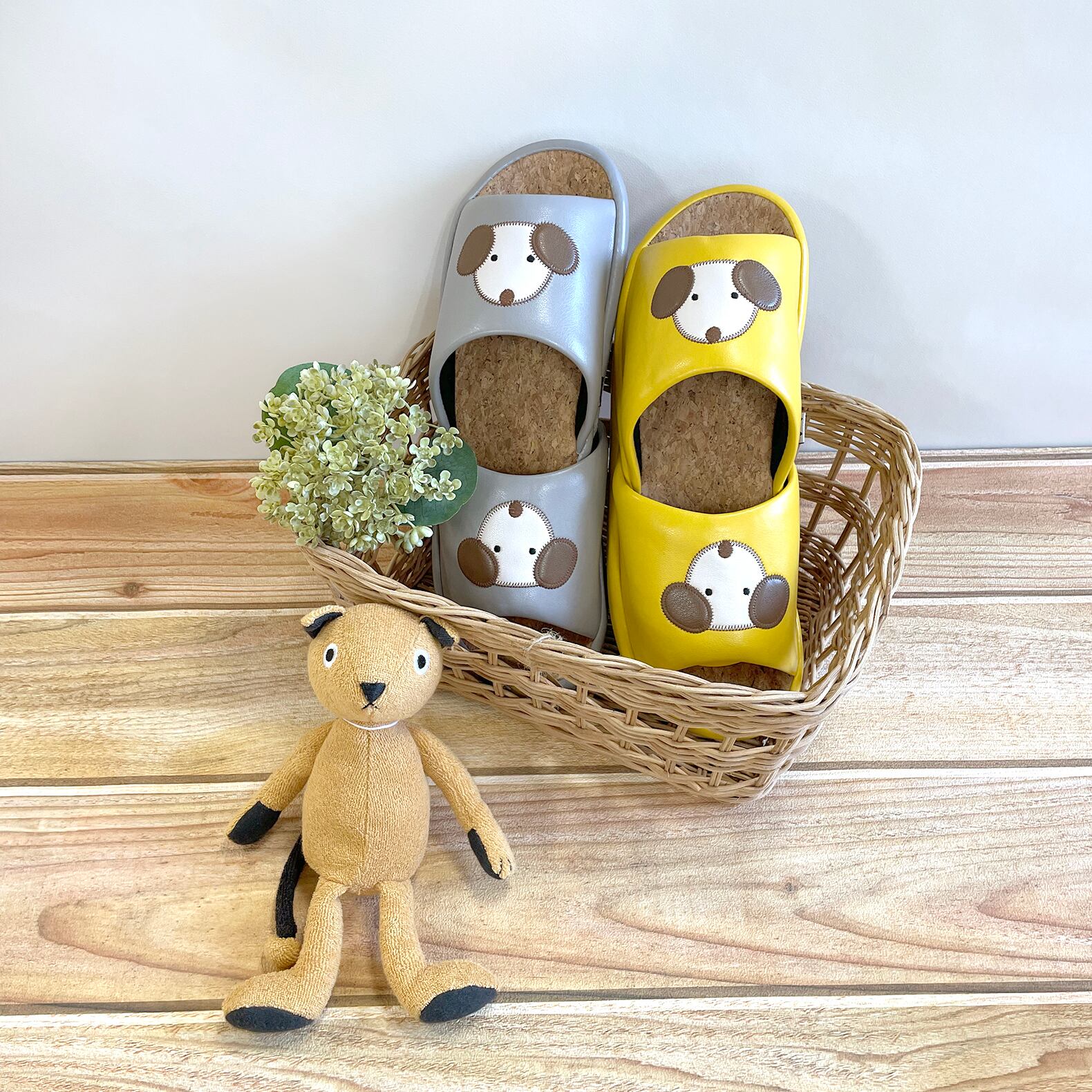 つぶらな瞳のわんちゃんアップリケがポイント。