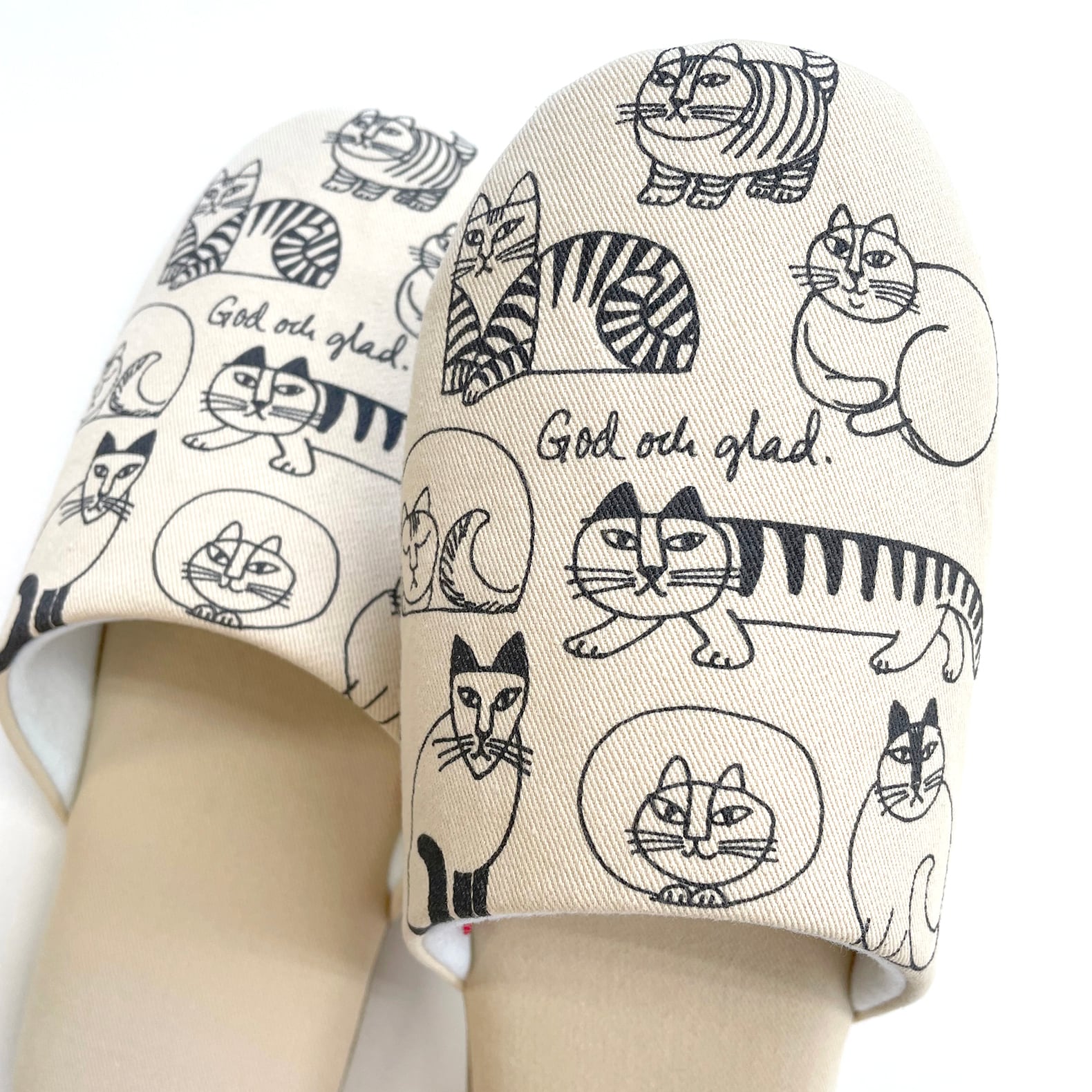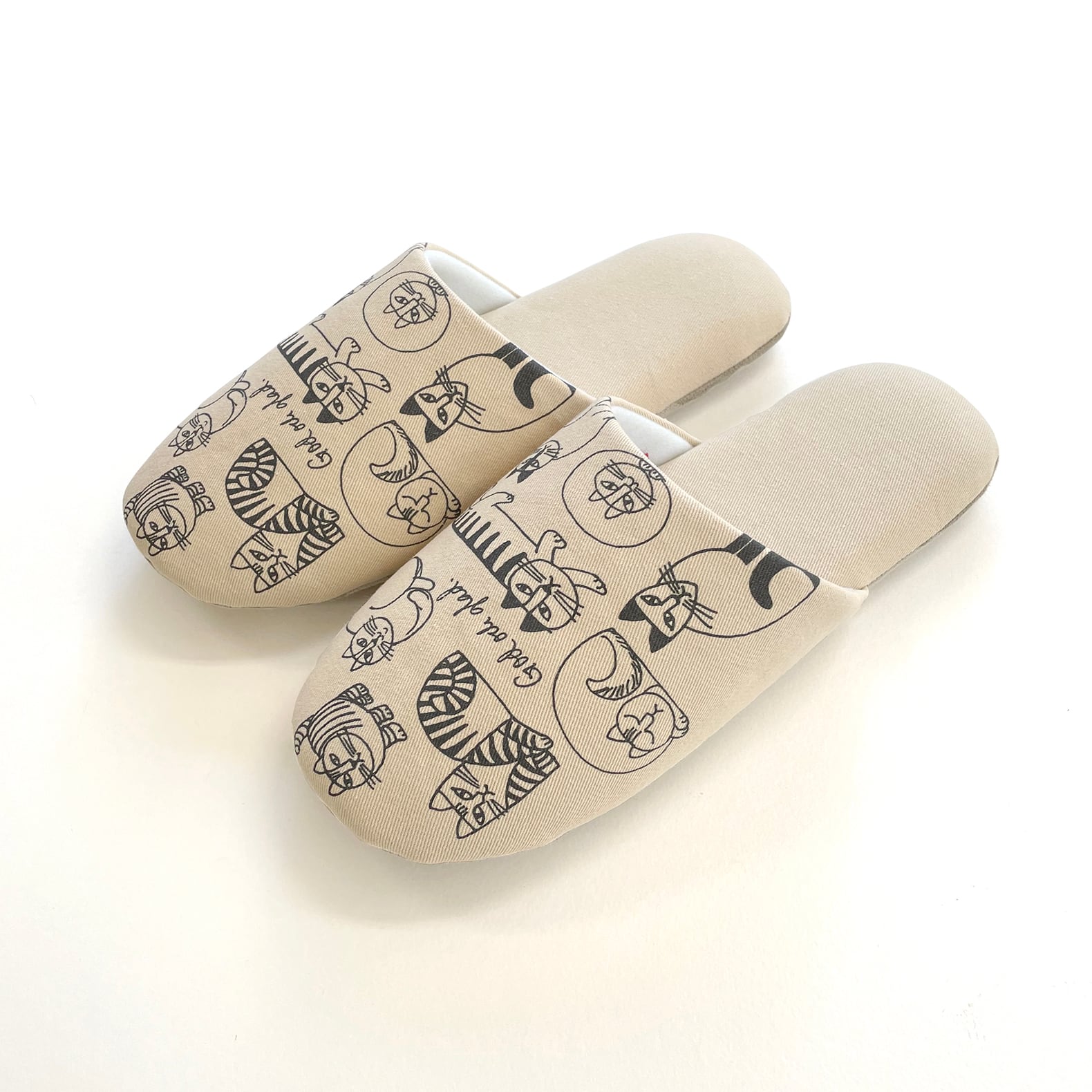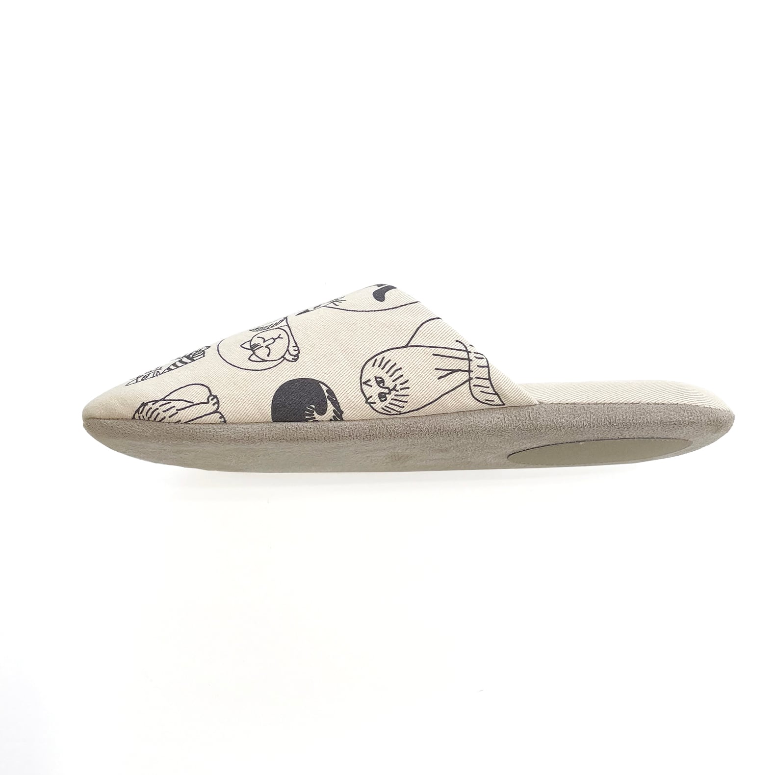 リサ・ラーソンの手描きイラスト『スケッチねこたち』がプリントされたスリッパ。