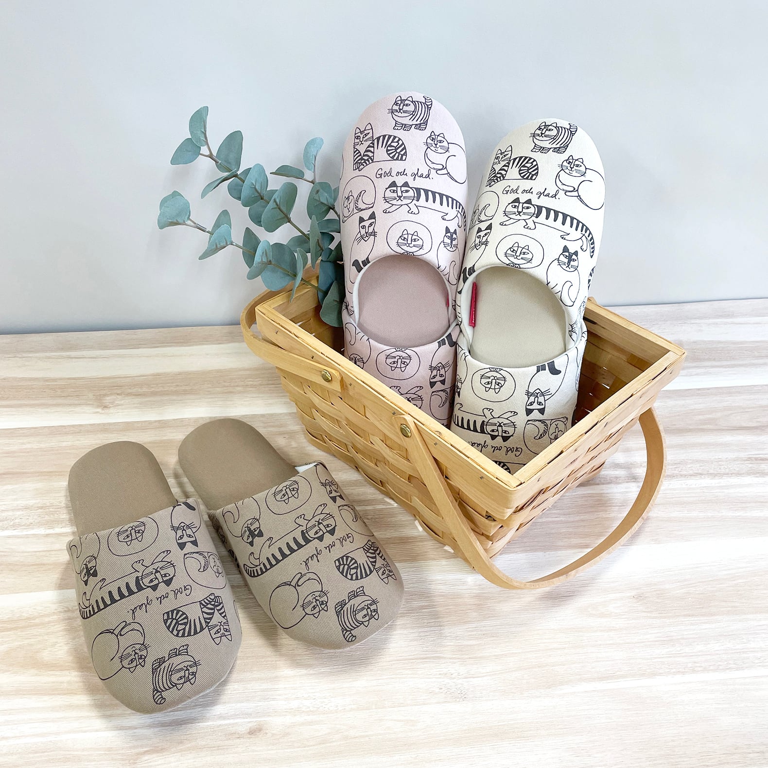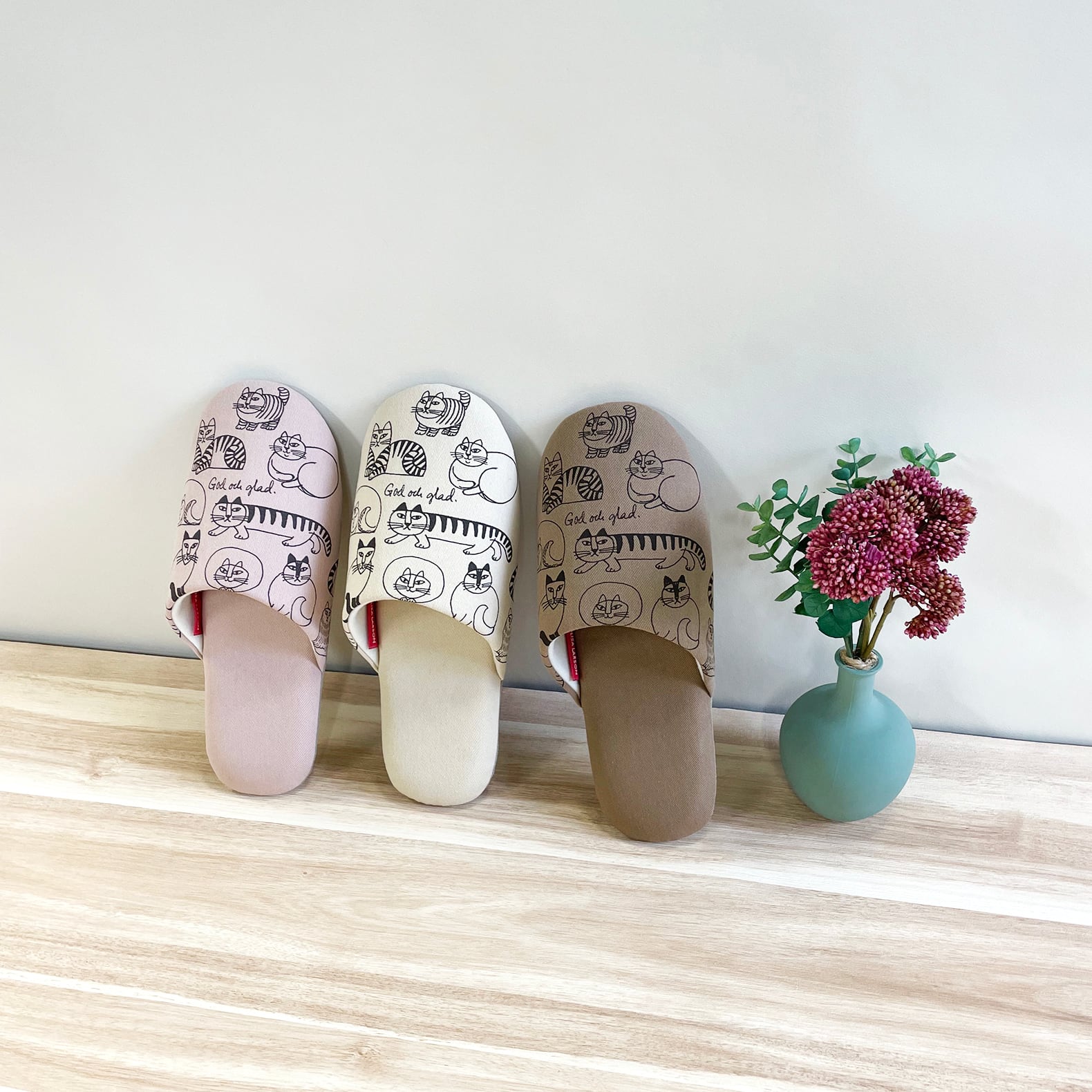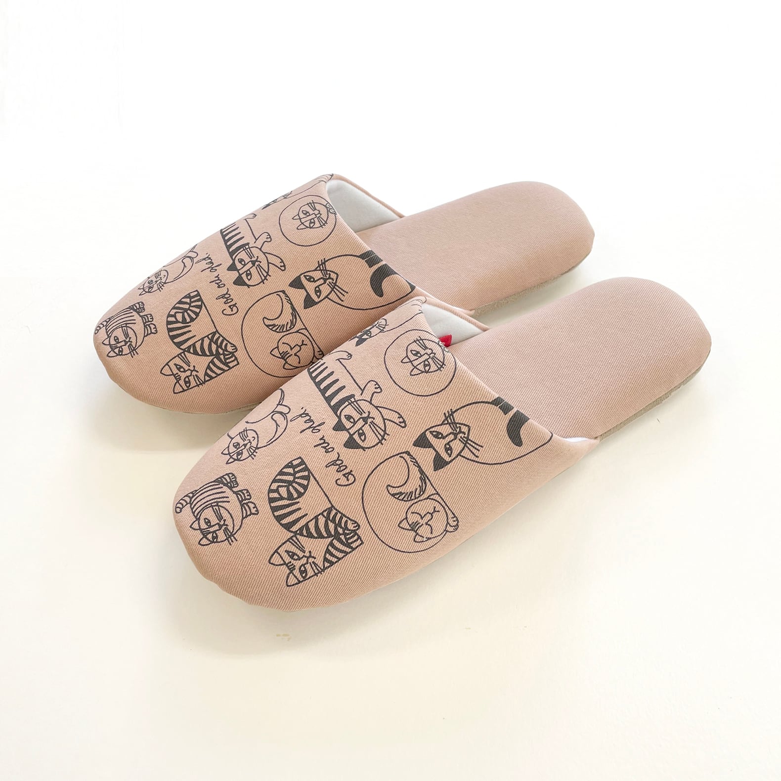 リサ・ラーソンの手描きイラスト『スケッチねこたち』がプリントされたスリッパ。