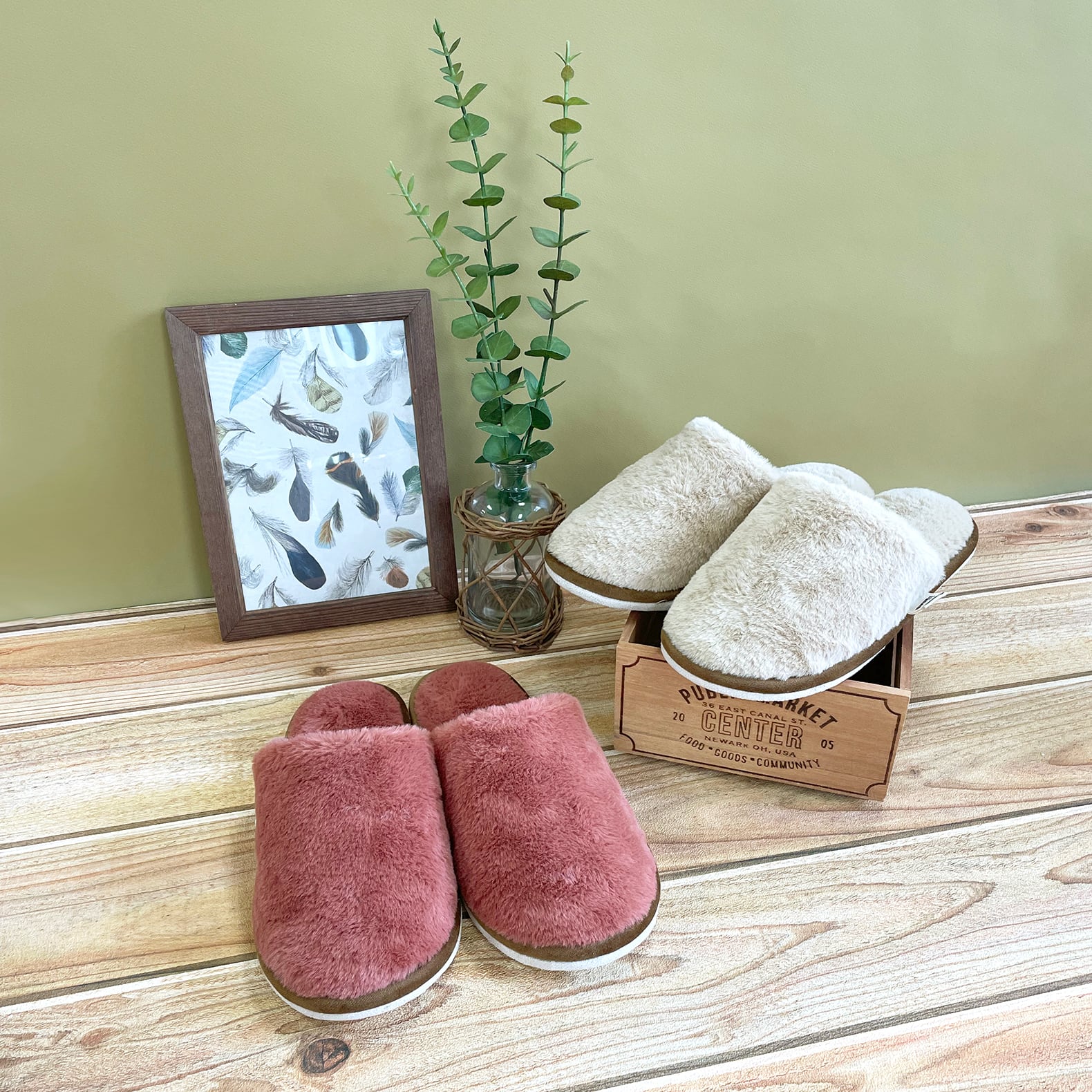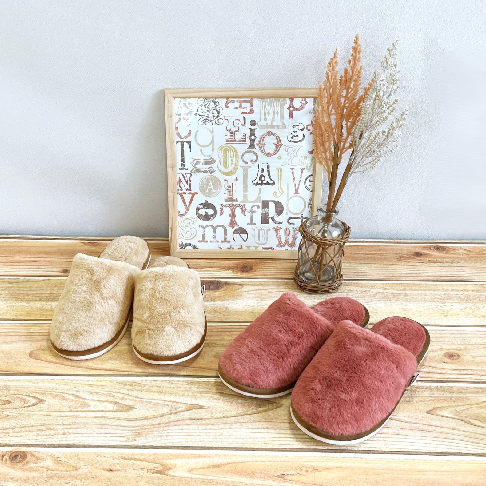 秋冬の定番!表も裏も全体にボアを使用したハネンのあったかルームシューズ。